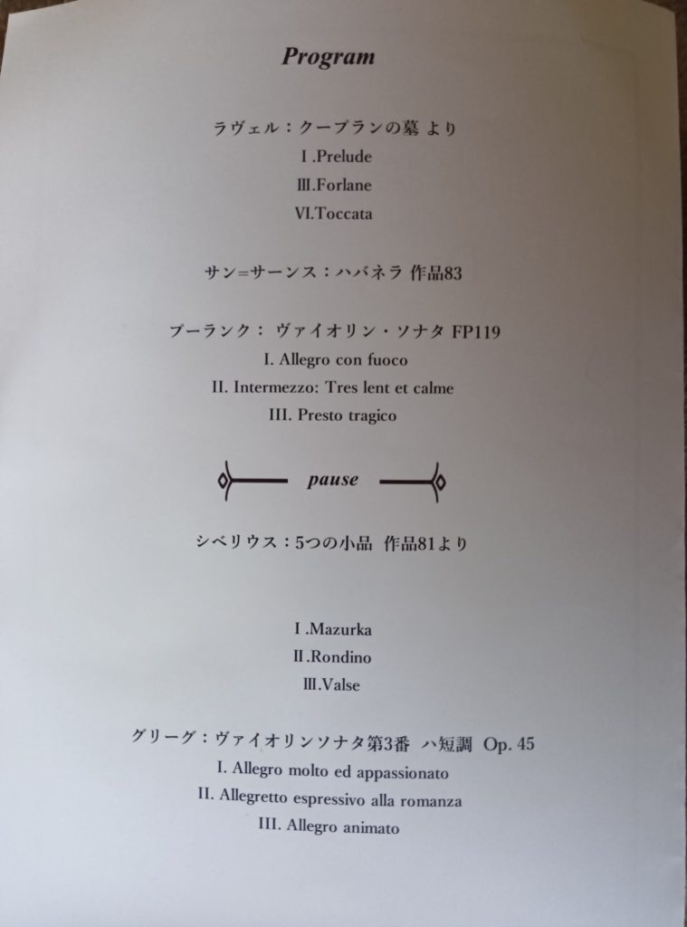 第1部はフランス、第2部は北欧の作曲家で構成された素敵なプログラムでした。